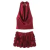 Sultry, sweet, and undeniably editorial — this chiffon halter and fish-scale skirt set was made for evenings that deserve to be remembered.