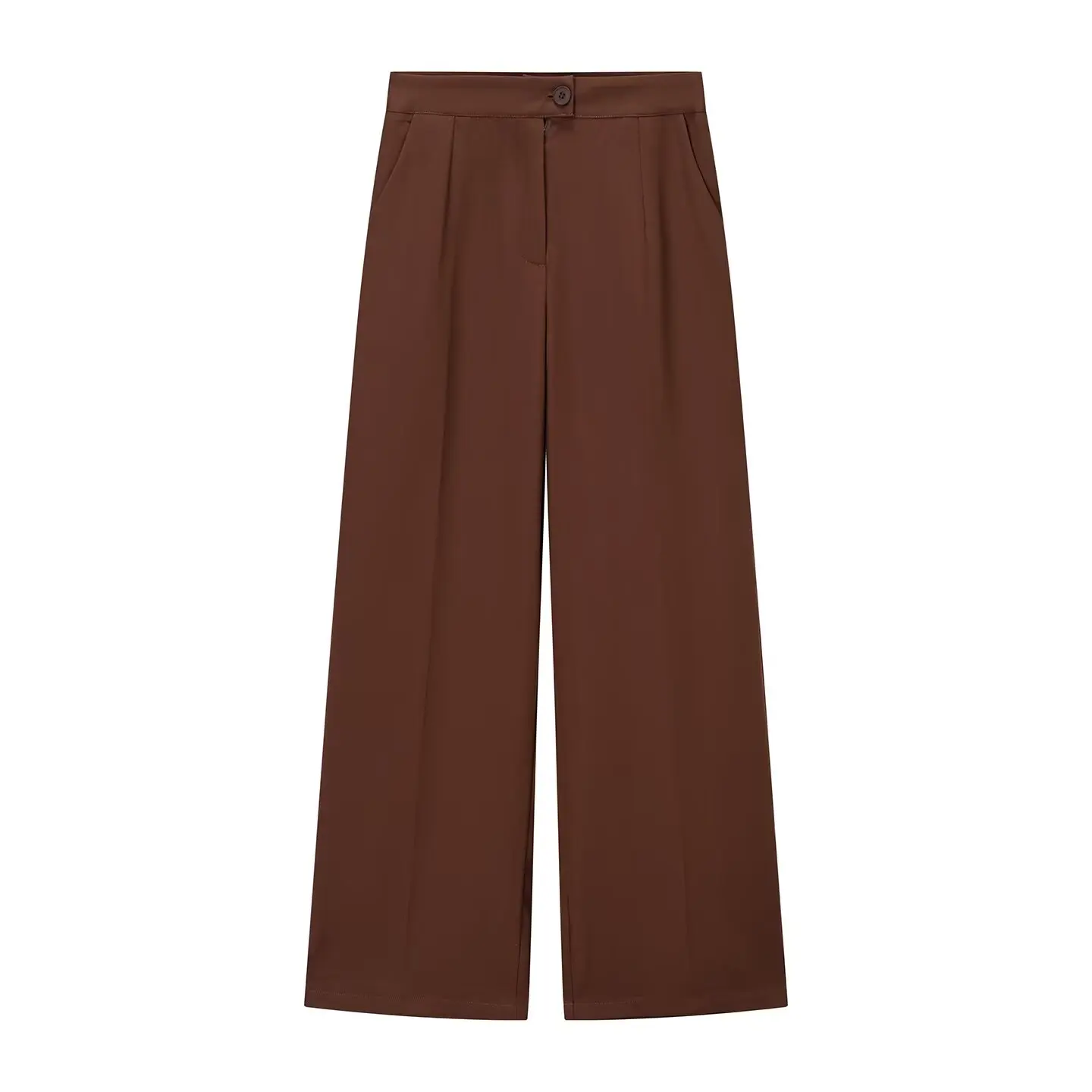 - Wide-leg trousers in a full-length cut for an elongating, editorial proportion