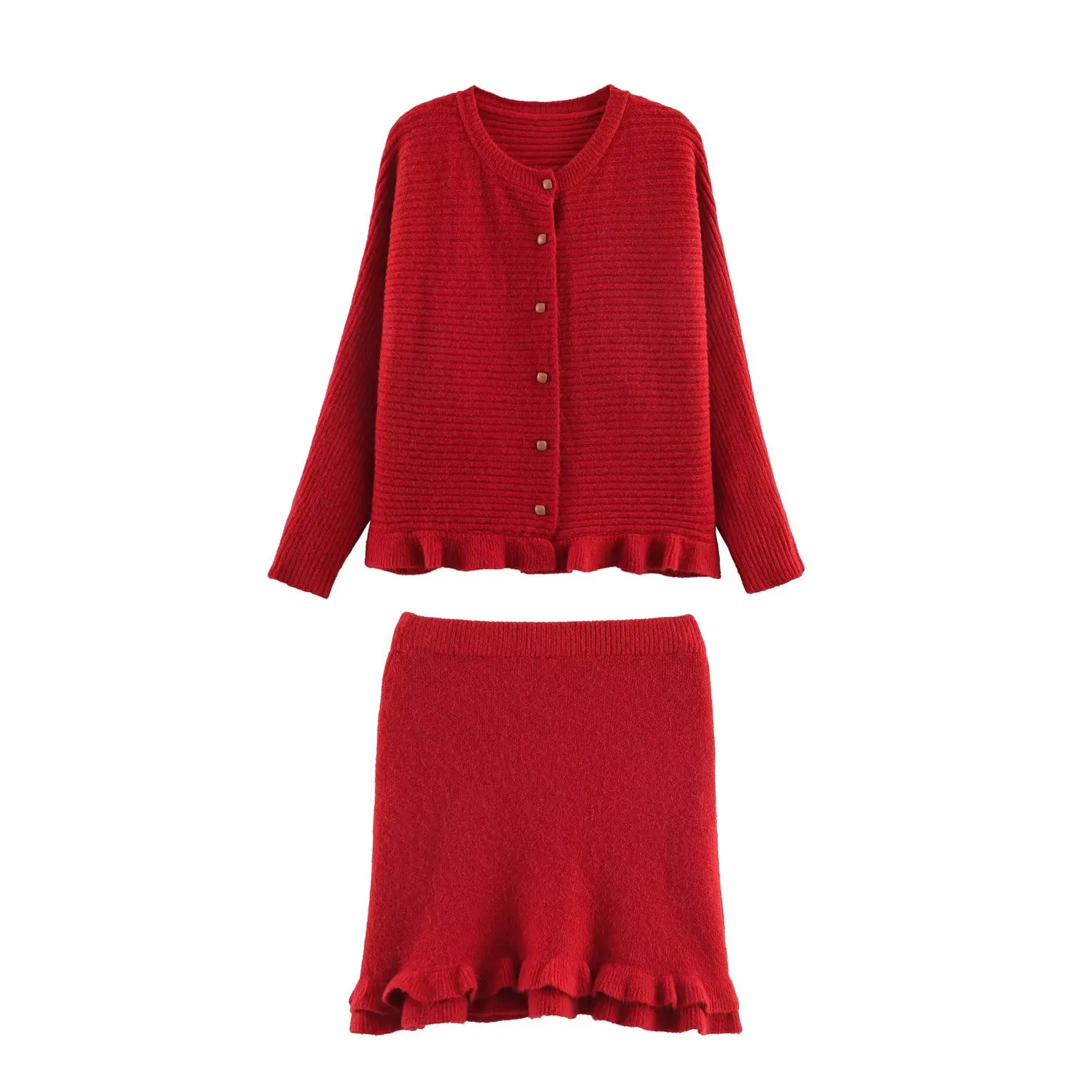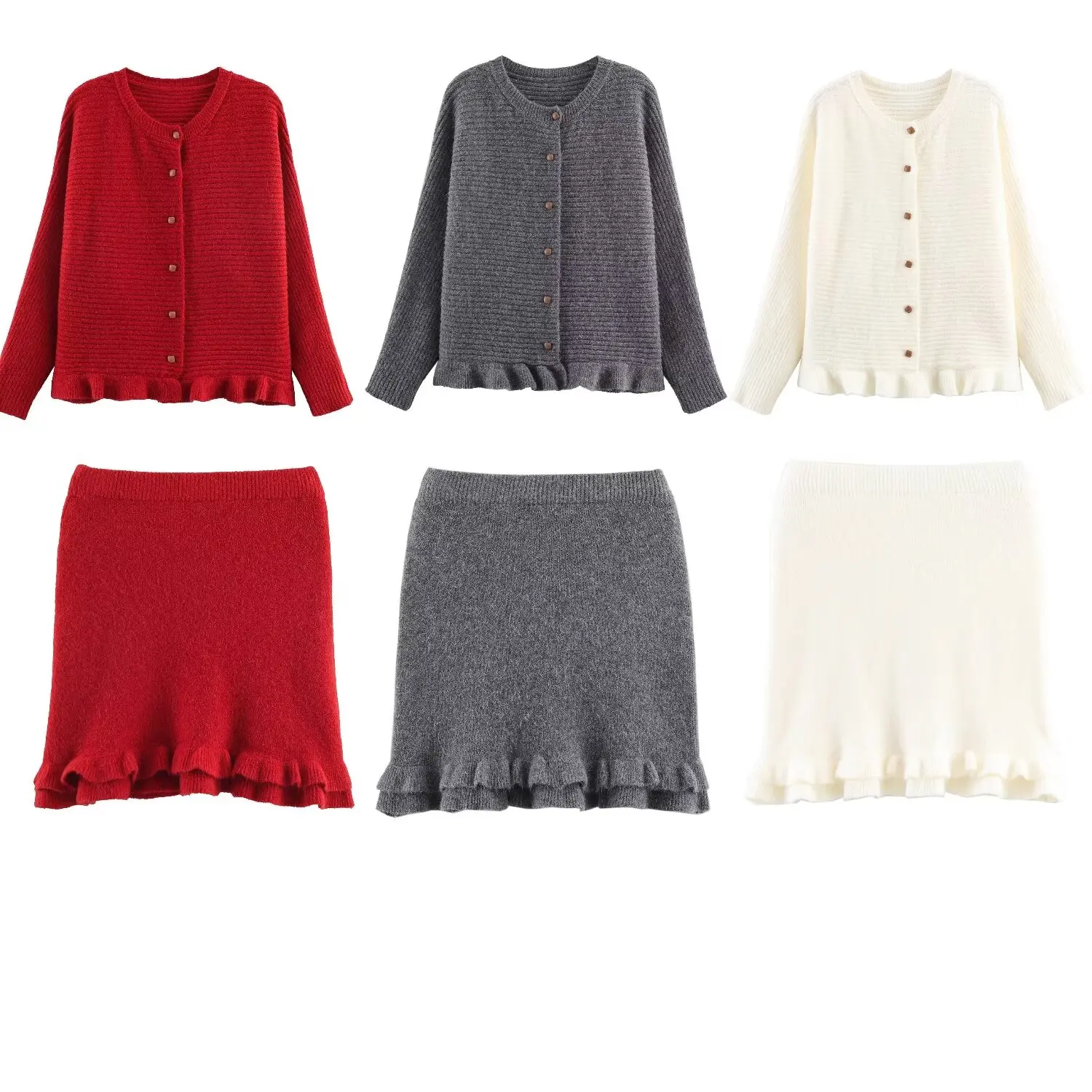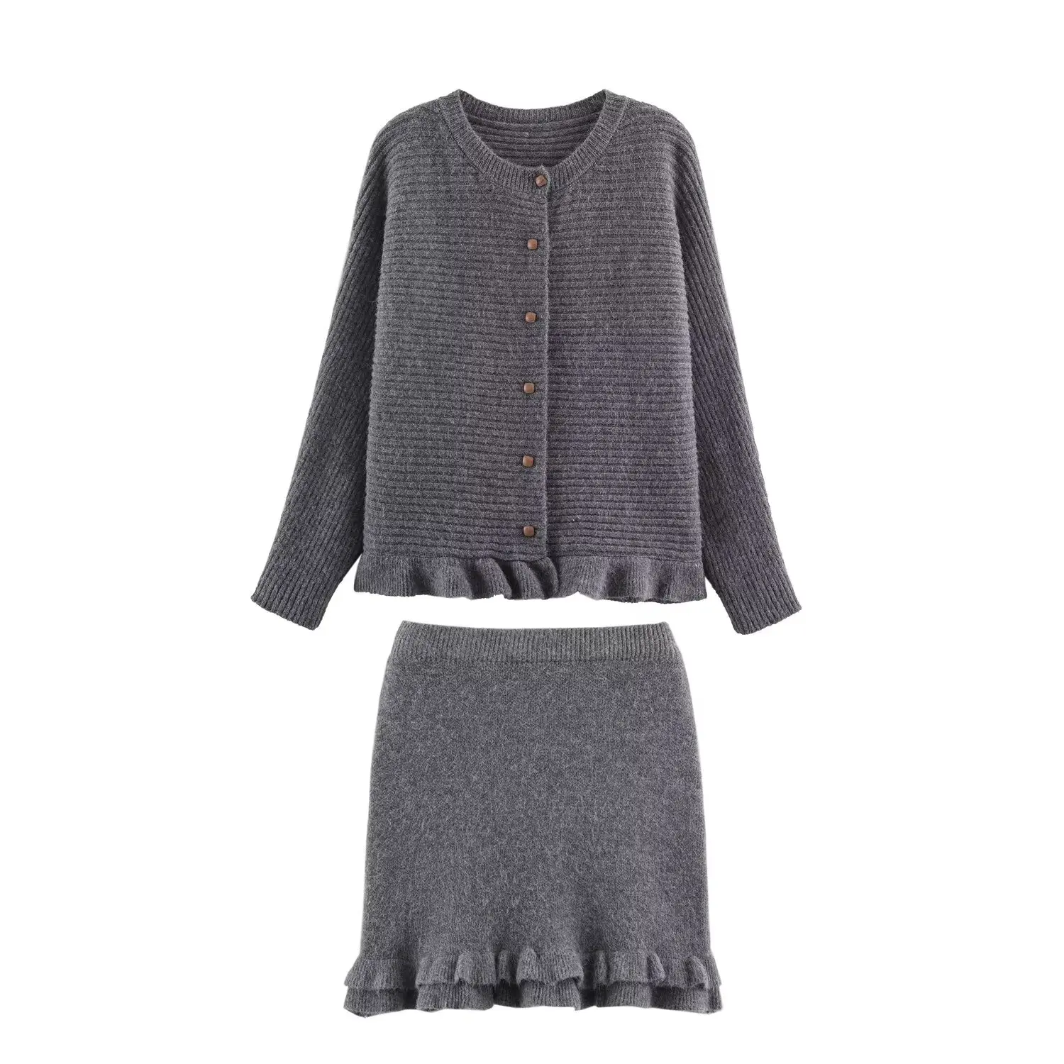 The warmth of autumn, reimagined — this wavy hem knit coat and mini skirt set wraps you in softness while keeping your silhouette sharp and entirely unforgettable.